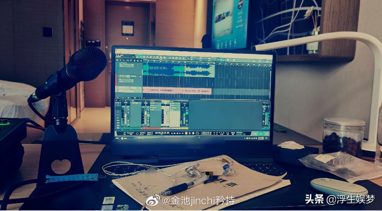 在金池的微博中,即便是出差住酒店她也会坚持练歌。
