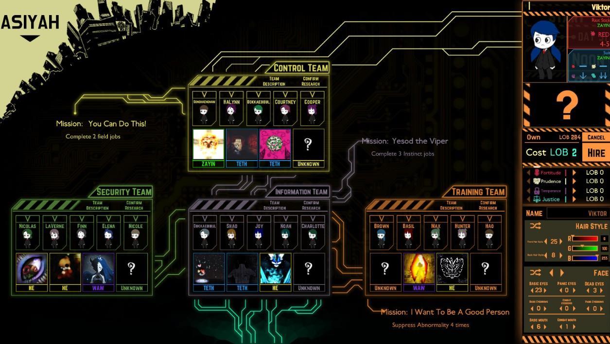 游戏的灵感来源于那些在小说,游戏和电影中登场的怪物们。在游戏中这些怪物将真实存在,而玩家就是扮演一位脑叶公司的主管,管理着这些异想体。这些异想体能够生产出一种新型的能源,玩家的职责就是在尽可能避免员工损失的前提下收集这些能源。