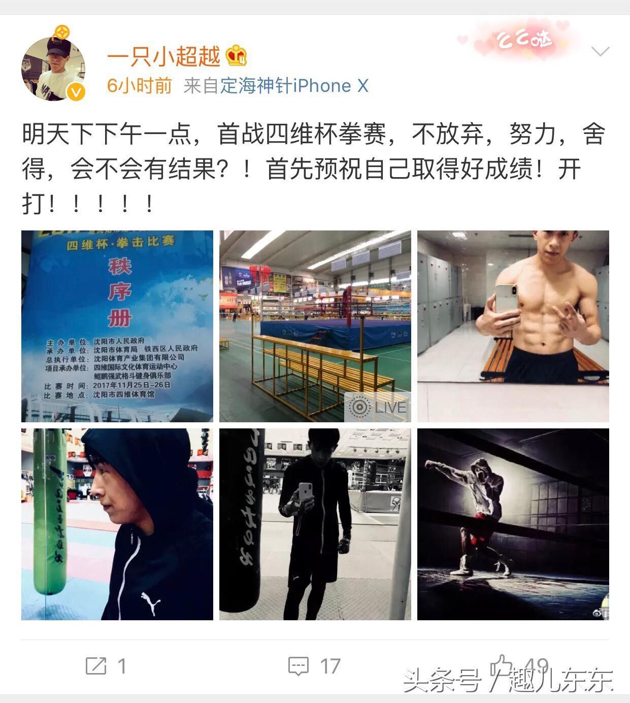 为了寻找真相,小编看了小超越的微博,纵观小超越的微博,小编发现小超越一直在练拳。
