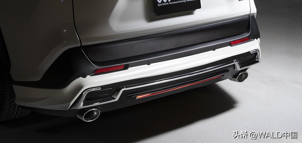 RAV4整车升级套件归属于 WALD Sports Line系列中,设计最大限度地利用了车体本身条件,从原车出发,佐以极简的设计,让车身原始设计和我们的设计产生协同效应,让整车激发出新的魅力。
