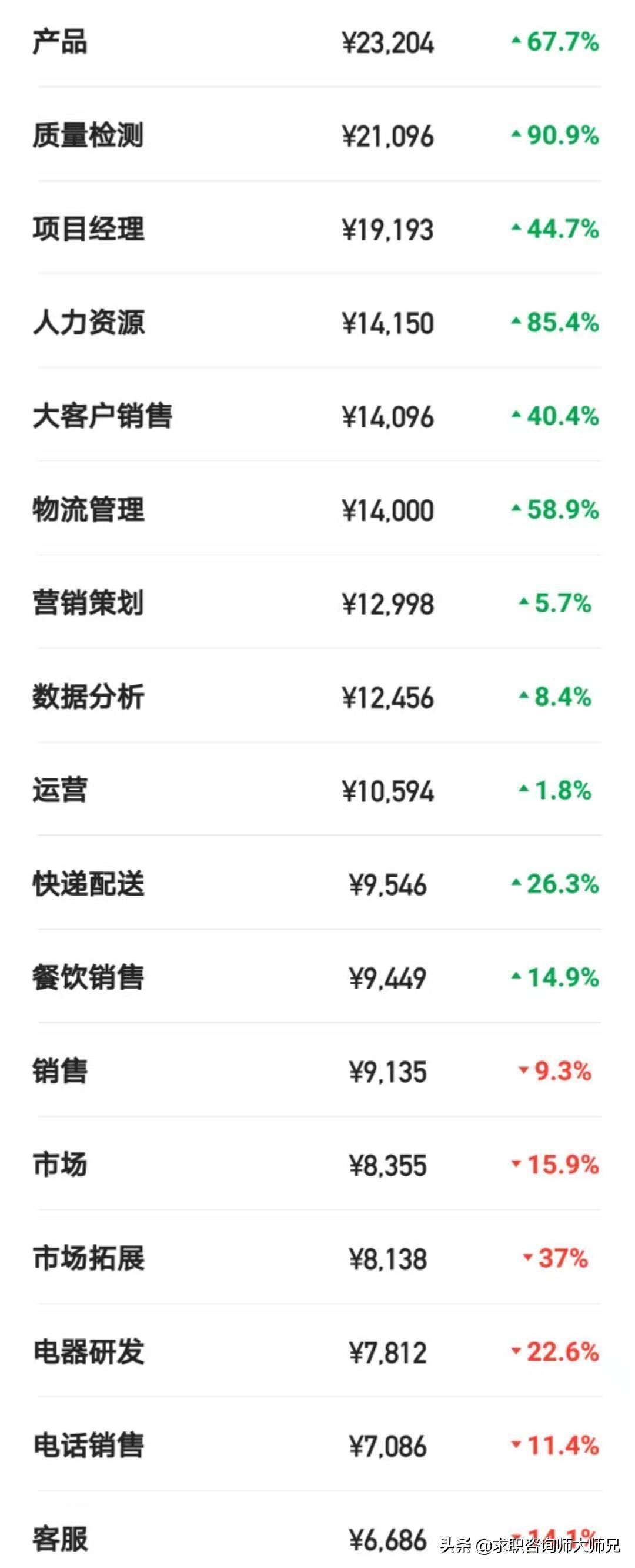 最后了解下该公司不同职位的薪酬情况: