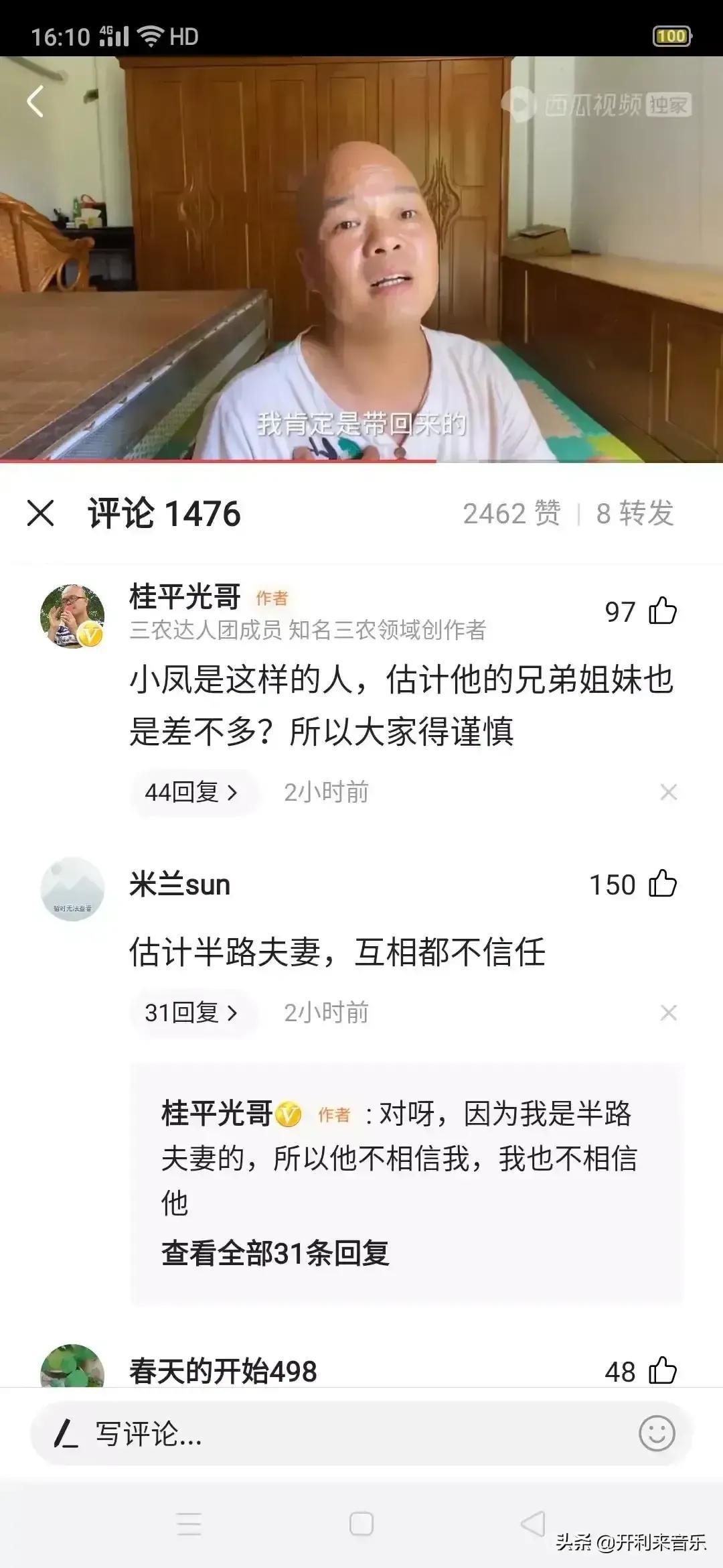 大家细心看一下他们的视频,表情绝对是没到位,没像是真的发生感情不合的那种表情。光哥作为600万粉丝的大咖,是位公众人物,如果真的是两人感情不合,能做到数落对方的种种不是,这个不是负能量吗?为什么还出视频?家丑不可外扬不是吗?还有小凤,已经家庭出现问题了,可看她直播时,没看到有悲伤,有烦恼,依然开心把歌唱。我觉得:这两夫妻绝对是在演戏,博取播放量。大家记住一句话:网络上虚拟不现实的,纯属虚构!