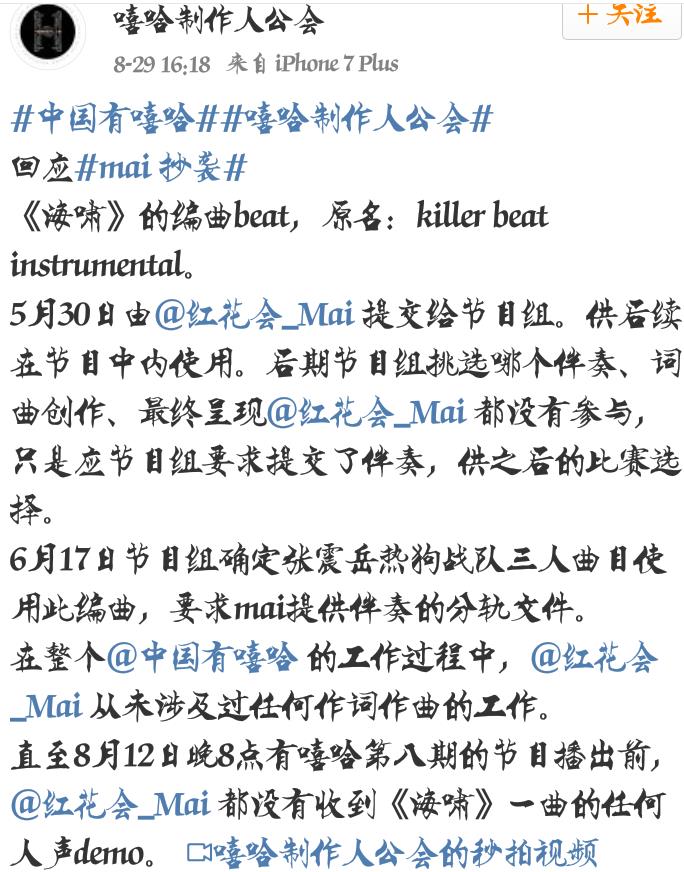 红花会mai回应抄袭,没有参与作曲,抄袭是无稽之谈,你怎么看?