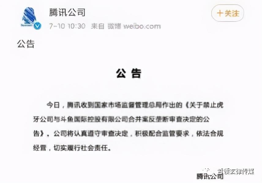 斗鱼和虎牙现在都属于腾讯入股的平台,而且现在两平台发展也挺好,之前传出消息说要合并,但是今天腾讯发布公告,市场监督管理局发出两家公司禁止合并的条例,因为涉嫌垄断,两家公司合并流产!
