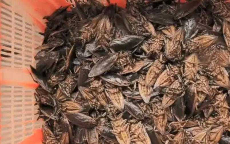 而在广东番禺的农村稻田里,还有一种特别的野味,不认识的人看到不敢碰,而识货人一看立马就会抓来吃,这就是大田鳖了。大田鳖是一种生活于稻田的昆虫,俗称桂花蝉,因为身体上有香腺可释放香味,闻起来像桂花香,再加上外形像蝉,所以就被取名桂花蝉了,但桂花蝉可不是蝉哦。