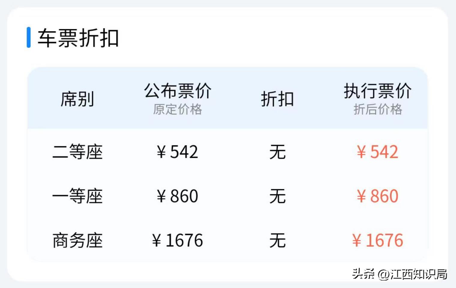 G6068次列车票价信息:目前,全程二等座车票为542元,一等座车票为860元,商务座车票为1676元等。