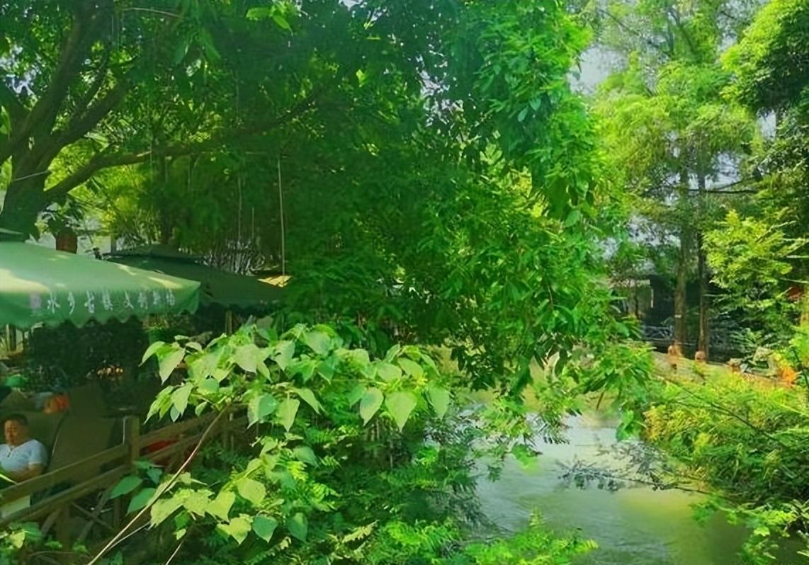 溪水穿镇而过,绿树成荫,非常凉快。小朋友可以在这玩水舀鱼,大人可以喝茶聊天,还可以参观电影博物馆、川王宫、九洞桥等景点,非常惬意。