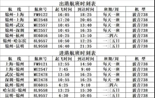 注意!锦州湾机场航班时刻表