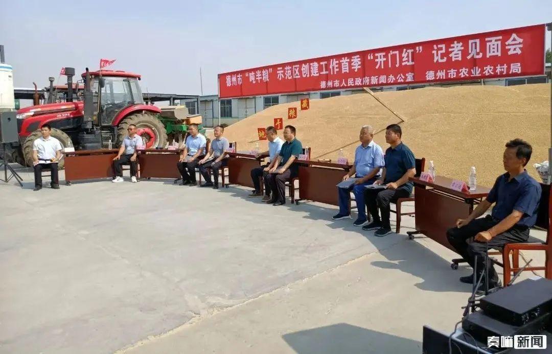 6月21日,德州“吨半粮”示范区创建工作首季“开门红”记者见面会在临邑县德平镇富民农场举行。