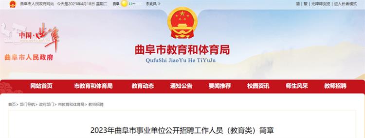 4月18日,《2023年曲阜市事业单位公开招聘工作人员(教育类)简章》发布。曲阜市2023年公开招聘教师177名(其中备案制幼儿教师175名)。咨询电话为0537—6509081。