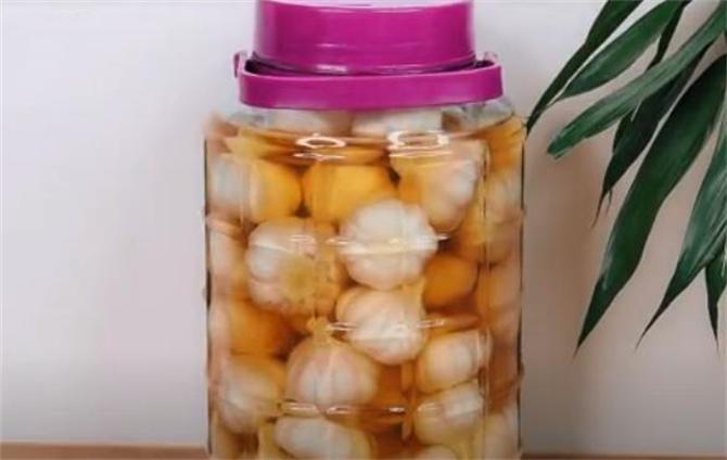 7.最后把口密封起来,把盖子拧紧,放在家里阴凉的地方密封腌制15天左右就可以吃了,用这个方法腌制出来的大蒜,不但做法简单,口感也是非常的好,可以搭配各种食物吃,喜欢就赶紧在家试试吧。