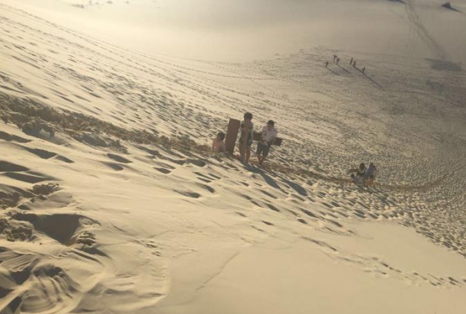到了傍晚时分,浅水区就会出现大群海豚,人们可以给海豚喂食物,除了这个以外,让人惊讶的就是在山崖的深处竟然会有沙漠,要是想去沙漠的话要乘坐特别的“巴士”,这里比较出名的项目就是滑沙,很多前去观景的人都会去体验。