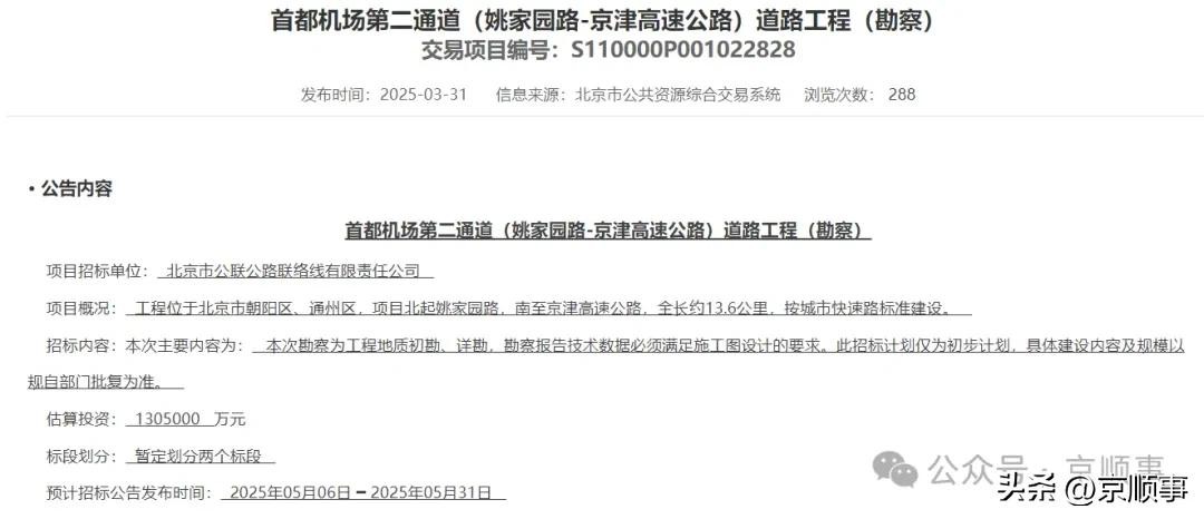 与这条路相交的首都机场第二高速,也就是首都机场第二通道,近日有了明确的进展消息!未来走机场第二高速你可能不需要那个九十度大拐弯了!道路工程前期两件套:设计+勘探已经安排 ↓