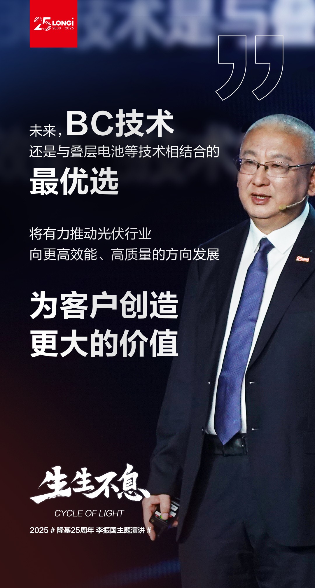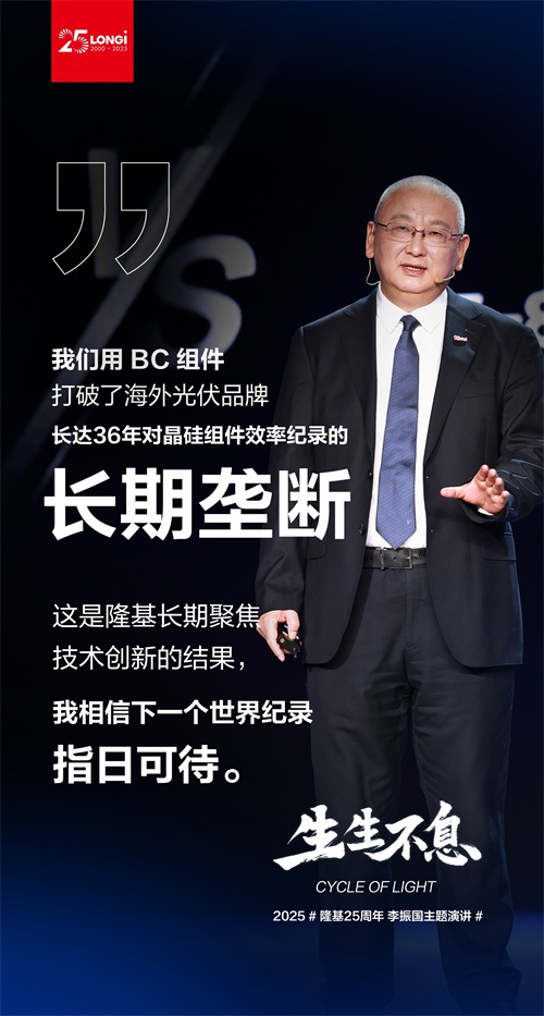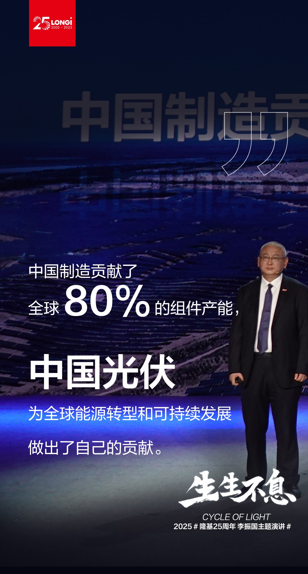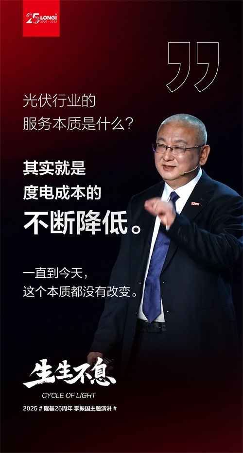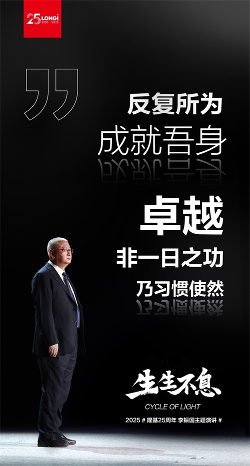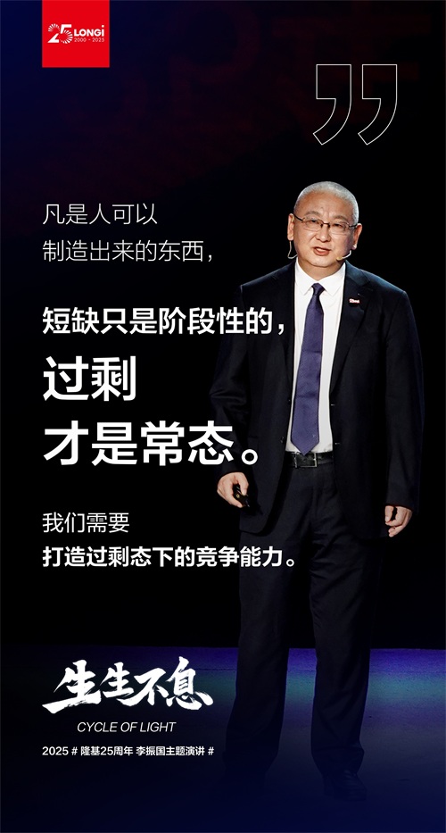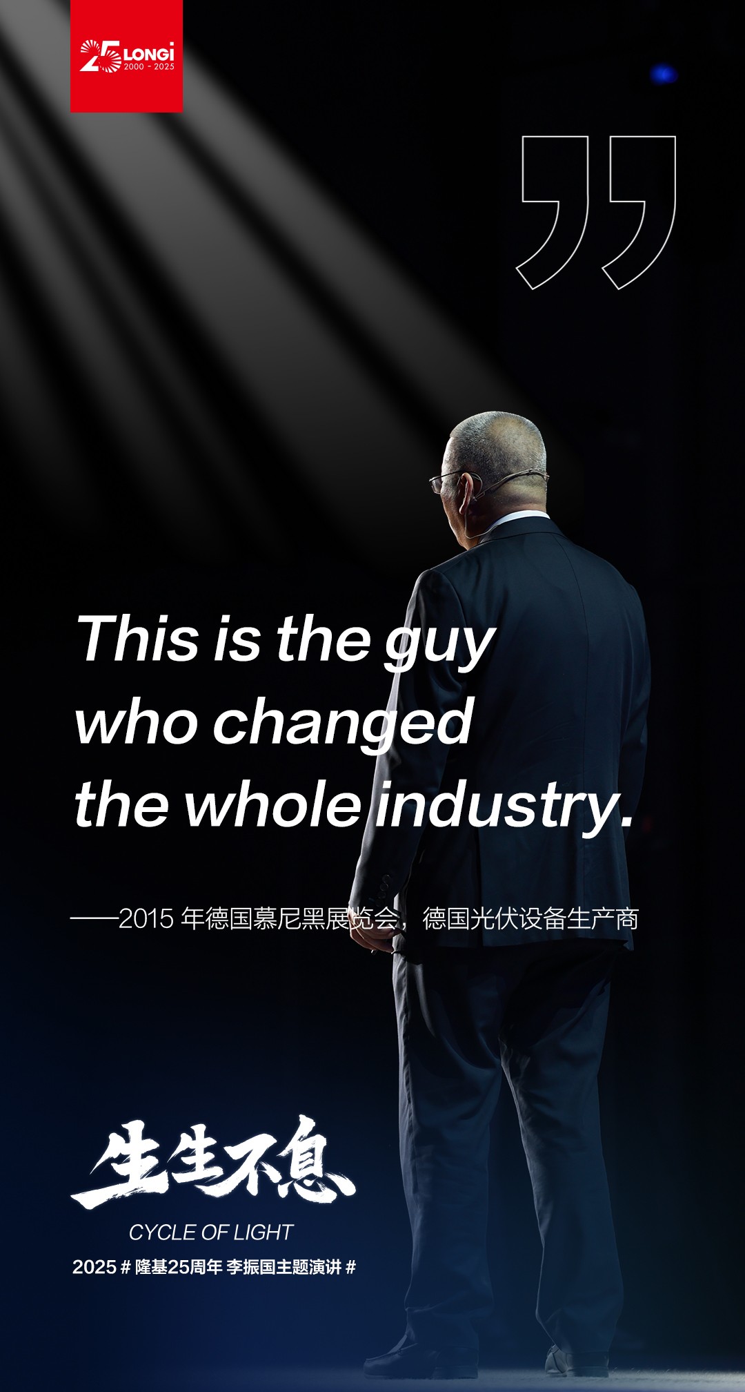 他不仅回顾隆基过去25年的发展历程,也直面目前行业和公司面临的境况,展望隆基的下一个25年,并向所有关心、支持隆基成长的人们表达了最诚挚的感谢。