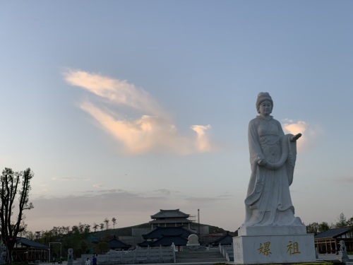 这个袅袅的姑娘,就是西陵之女嫘祖,中华人文始祖黄帝的正妃,她教民养蚕、丝织、制衣、推行天下,她提倡婚娶相媒,缔结对偶婚姻,进行人伦教化,与黄帝一起开创了中华男耕女织的农耕文明,被誉为“人文女祖”,尊称为“先蚕娘娘”。