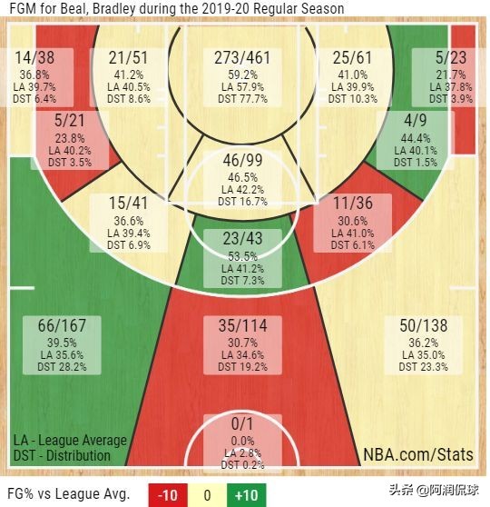 比尔本赛季距篮筐出手距离高阶数据