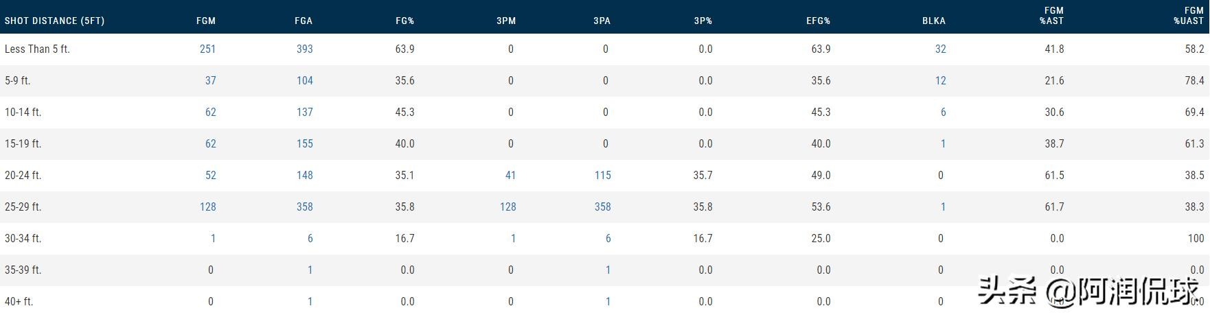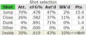 比尔本赛季投篮选择数据表