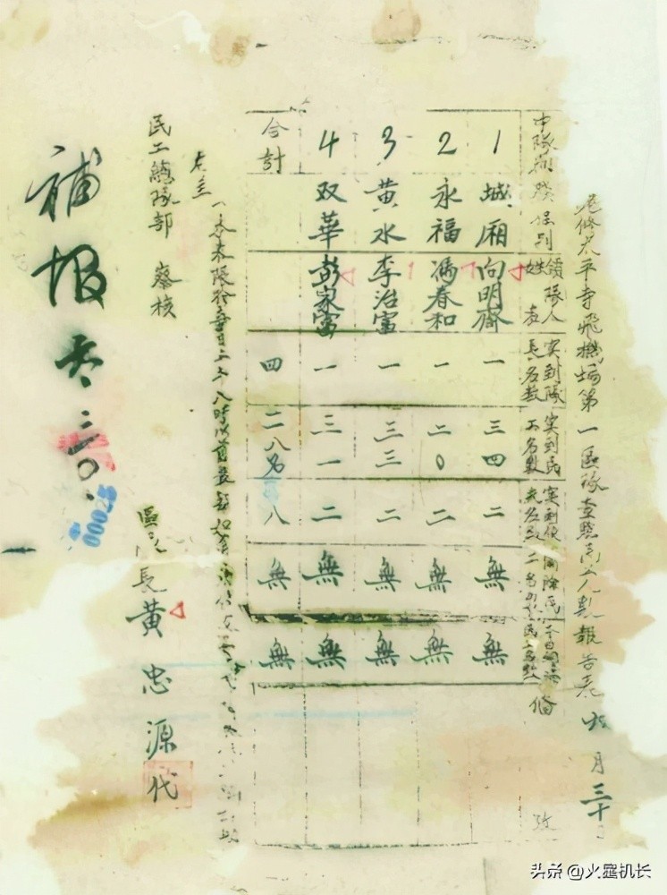 《双流县修建太平寺飞机场第一区队查照民工人数报表》