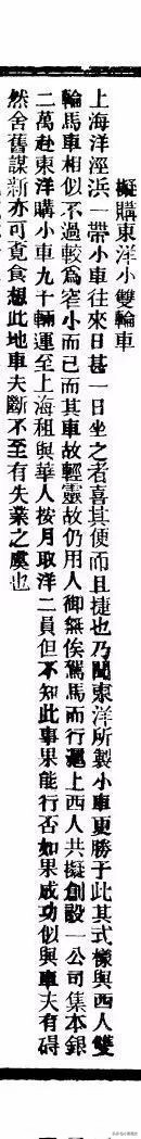 正是在这样的城市发展背景下,米拉引进的东洋车和车夫职业蓬勃兴起。米拉作为法国公民常驻上海,他的东洋车生意自然要向法租界当局申办营业,鉴于有税可收、有利可图,法租界公董局和公共租界工部局协商后批复同意。当局给米拉发了12张东洋车的牌照,规定每张牌照运营25辆东洋车,这样算,米拉的公司可以经营300辆东洋车。这件事在当时的上海引起了不小的轰动,当时的《申报》为此作了专栏报道。有私营就有个体,东洋车作为新型半机械的交通工具穿梭于上海街巷,很快形成行业规模。个人车主的经营也如雨后春笋般发展兴盛起来。为了将企业和个人运营区分开来,工部局规定企业运营的东洋车统一图黄漆加以区别,黄包车由此而来。