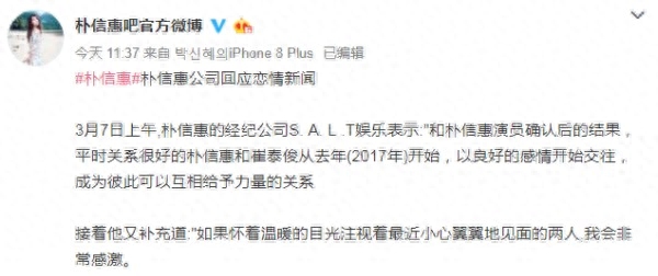 官方也证实了这一消息!男俊女美,很是般配,wuli朴信惠女神就是这么受帅哥欢迎。和她搭戏过的男星都是国民老公,男友这么帅也不足为奇!