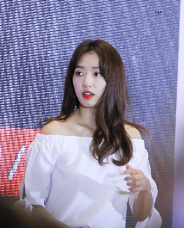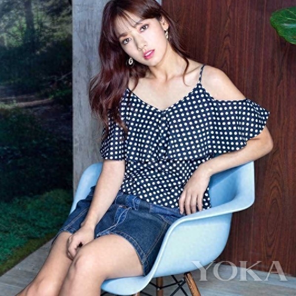 我说朴信惠很甜美,没人反驳吧?身穿波点露肩上衣,搭配牛仔短裙,荷叶边设计相当俏皮可爱,很少女的搭配。