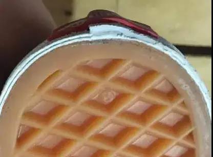 观察后标凹凸度,正品会在鞋后跟白色的拼接处有一定的凹凸度,基本不会整块平整。