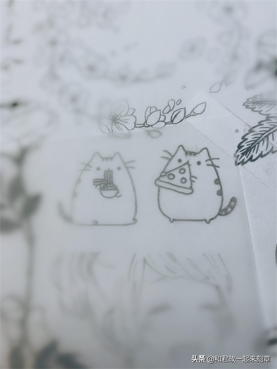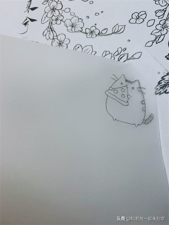 描图时最好按着从上到下,从左到右的顺序描,不然描过的地方很有可能会被手蹭花。用透明胶带固定,这样硫酸纸不容易移动,在描图和转印的时候都可以掀起一角看看描/转印成什么样了,是否忽略了细节。如果描细节比较多的图,也可以使用笔芯为0.3mm的自动绘图铅笔,笔芯越细,图越不容易糊,看自己的需求选择用笔。刮硫酸纸时,一定要注意力度,不需要特别用力,太用力会刮破纸张,甚至刮坏橡皮。如果转印时,有一些线条没有转印上,可以用铅笔直接在橡皮上补画一下。