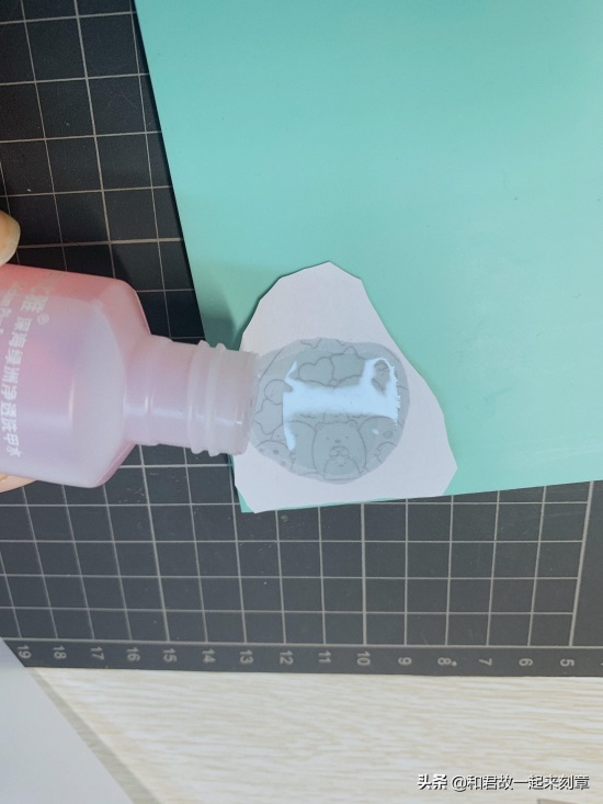 3.倒洗甲水,让洗甲水浸润素材纸,纸变成半透明,可以看见线条。