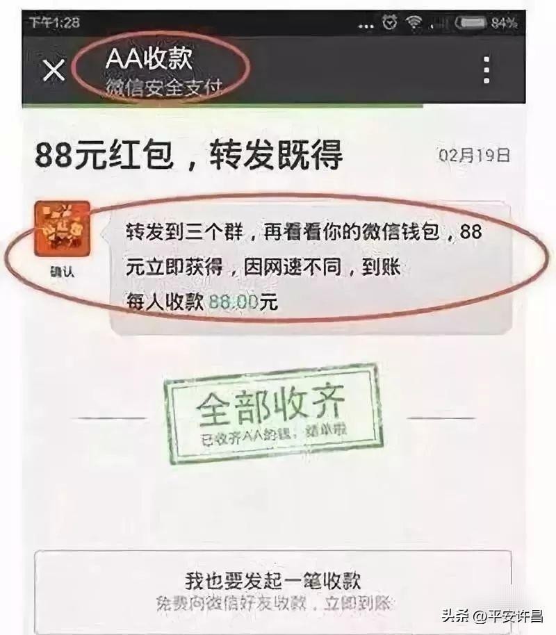 警惕那些写着“送钱”“现金礼包”“AA红包”等字样的红包骗局。
