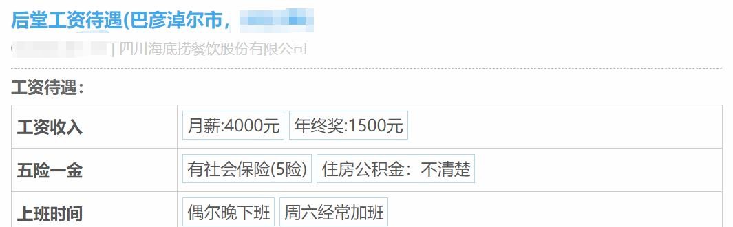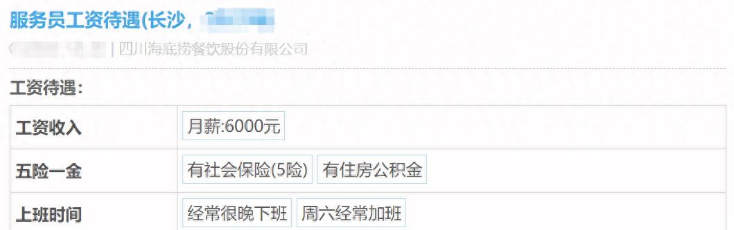第一位自曝薪酬的,是海底捞的服务员,他的月薪是6K,有五险一金,工作日经常晚下班,周末要加班