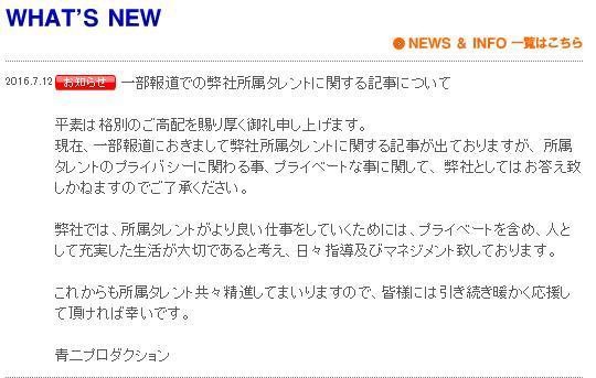 随后跟进的是神谷浩史隶属的青二事务所,公告称,“非常感谢大家平时的厚爱。现在一些媒体对弊社旗下艺人进行的报道涉及到了我旗下艺人的隐私问题,关于隐私方面的事,弊社不予回应,敬请各位理解。弊社为了保证旗下艺人能够更好地从事其工作,我们非常重视包括隐私在内,艺人作为人的充实生活,每天都会进行指导管理。”