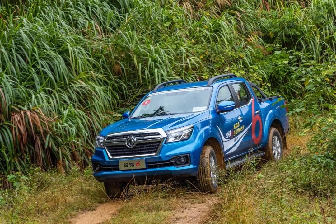 锐骐6的四驱结构为电控分时四驱,有2H、4H、4L三种模式,四驱模式下扭矩分配比例达50:50,在4L模式下可将扭矩放大2.48倍。车辆配有车身稳定控制系统,对行驶脱困有帮助。