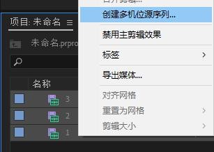 新建项目,新建序列,把视频导入到项目面板内。选中你拍摄的素材,右键,创建多机位源序列。