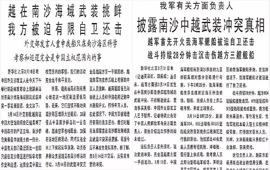 3.14海战过去仅10天,越南国防部长就视察了越方所占部分南沙岛礁;同年4月,越方再次夺占南沙3座礁盘;1989-1990年,又相继登上8座岛礁……