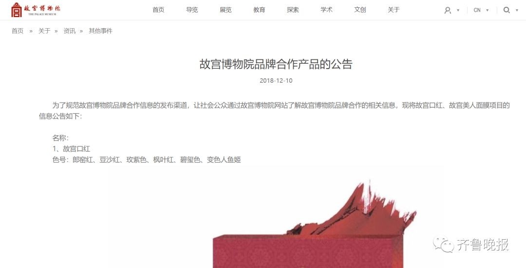 现将故宫口红、故宫美人面膜项目的信息公告如下”。
