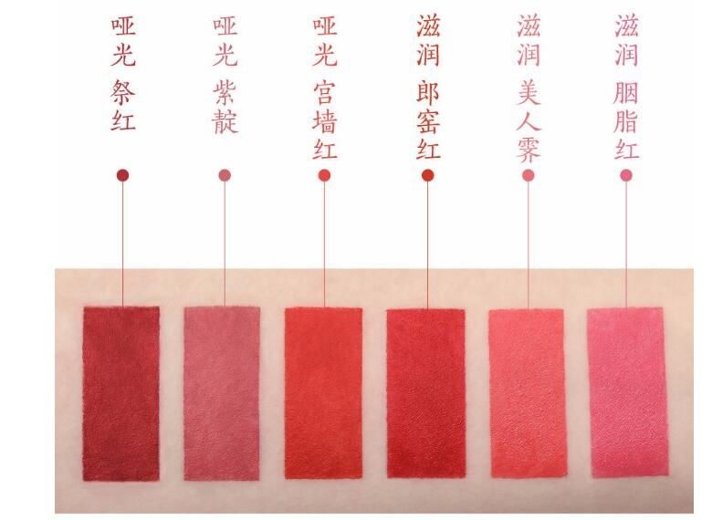唇色选择的灵感均来源于故宫国宝色。