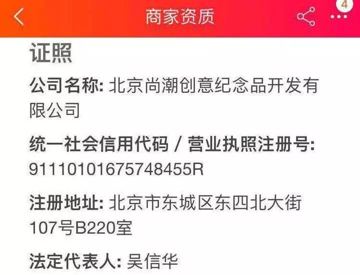再来看看“故宫淘宝”在淘宝上的商家认证资质,它是由北京尚潮创意纪念品开发有限公司运营的。