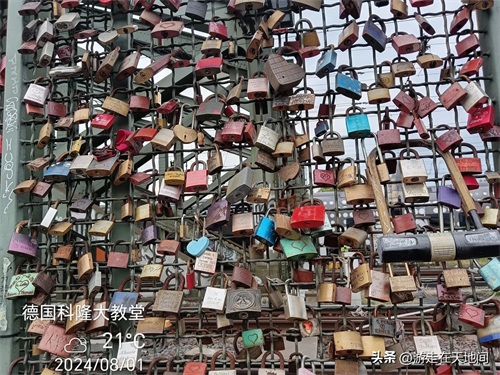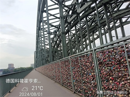 霍亨索伦桥是科隆最古老的桥,建于1907年和1911年之间,由三座铁路桥和人行道组成。这桥上五彩斑斓的各式铜锁,形成独特的一道风景线。