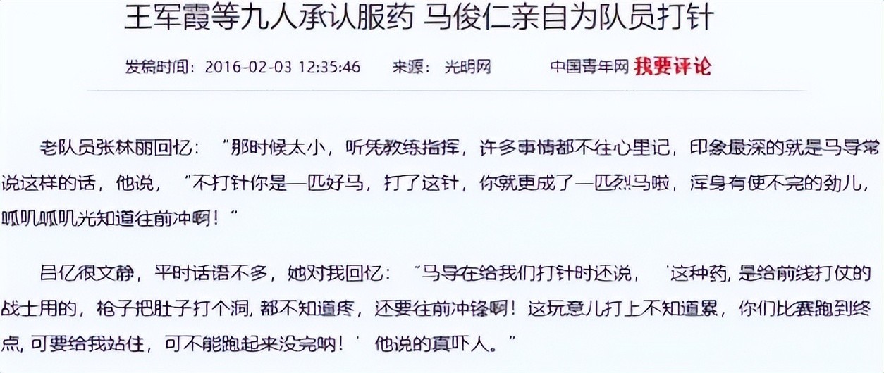 更让人瞠目结舌的是,在训练期间,马俊仁还亲自给她们注射药剂,当大家询问这是什么时,他就说是普通的保健品罢了。