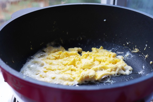 2.一定要用筷子来滑蛋,才能呈现蟹肉和蟹黄的质感