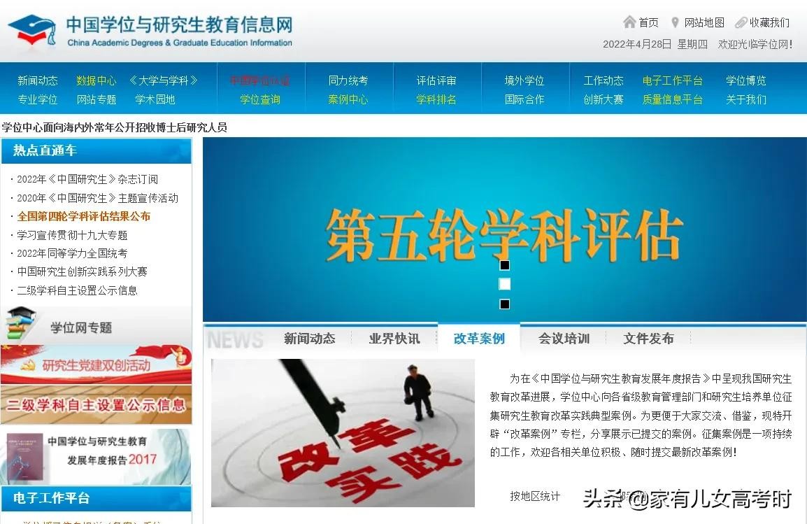 第三个是中国学位与研究生教育信息网,高校的学科评估在这个网站上,这是由教育部主管部门定制的一套评估体系,是目前最权威的专业排名,没有之一。您还能查到国家重点学科名单和省级重点学科名单等等,对于报考志愿来讲,绝对的有用