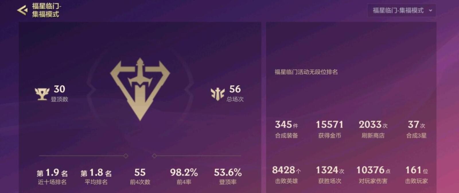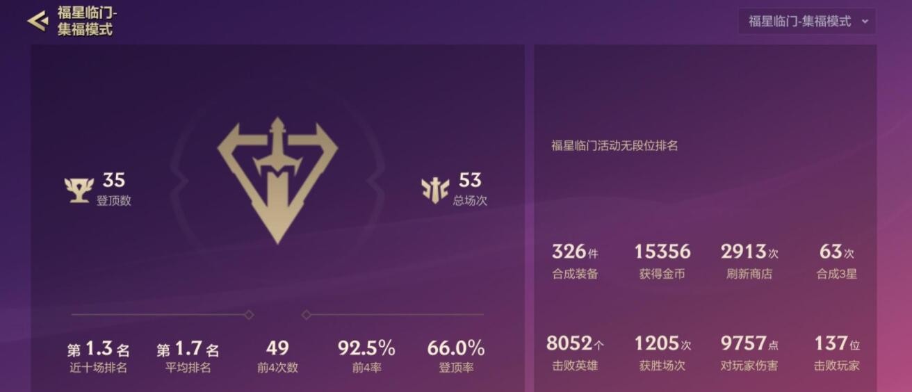 福星临门版本之所以有如此高的登顶率,是因为有不少人机,所以就算是新玩家,也很容易吃分。而对于云顶S4老玩家来说,那就更容易了,因为他们不需要熟悉英雄、羁绊,与新玩家对战时,毫无压力。