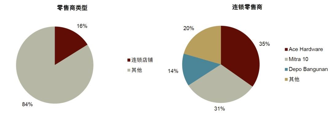 图表33: 印尼家居用品行业连锁店和单体店市场占有率一览(截至2022年)