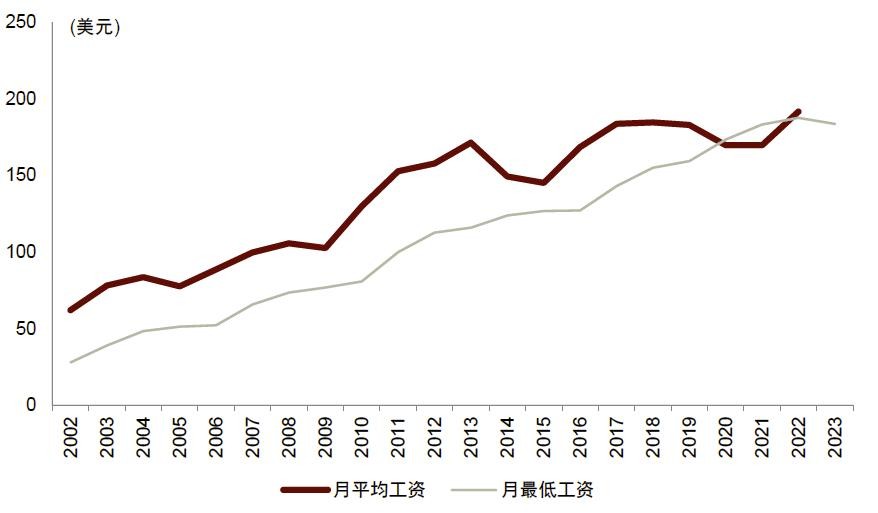图表38: 印尼月均工资与最低月工资均出现上涨