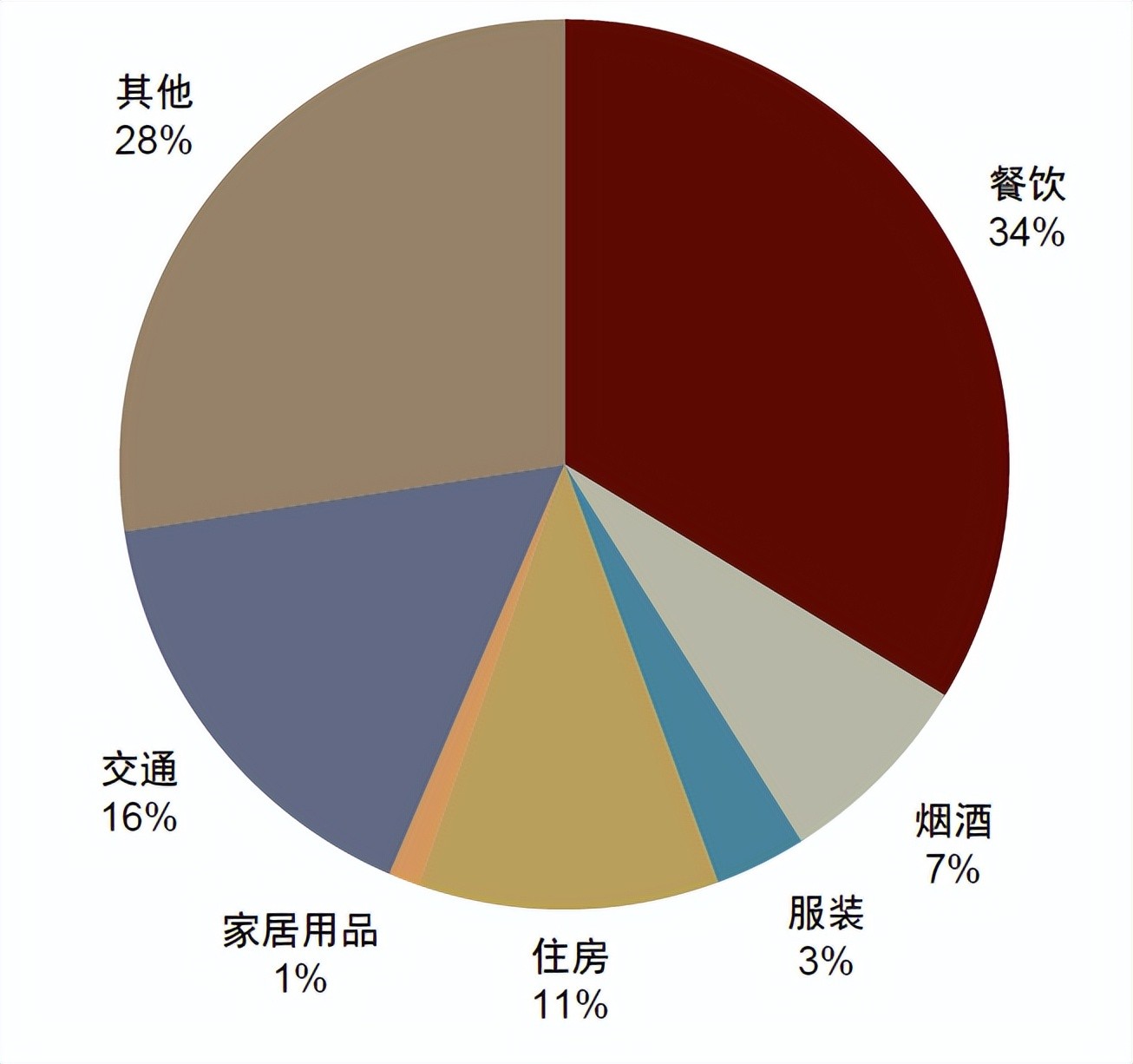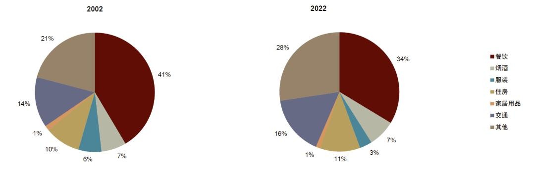 [6]2022年食品饮料消费占比从2019年的31.9%上升至33.7%。