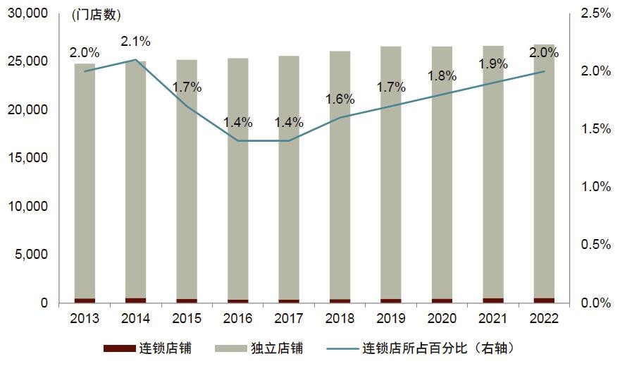 图表29: 连锁店市场份额增加,而单体店市场占有率下滑