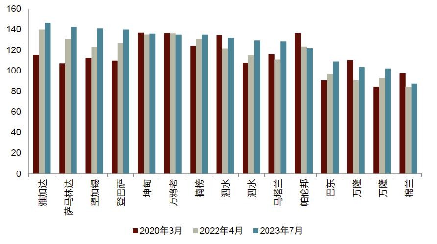 ► 雅加达以外的印尼地区存在增长动力,进入正常化复苏轨道。除了雅加达以外,我们注意到印尼其它城市快速增长,这一点从本地生产总值强劲的增长势头中不难看出。我们认为雅加达以外的地区,例如泗水、万隆、棉兰、望加锡、坦格朗和巨港,对家居用品企业发展的重要性日益上升。在2022年疫情刚刚结束时,由于印尼消费者将其支出中更多的部分用于食品饮料消费[6],高通胀拖累行业复苏。但是,我们注意到2023年印尼不同城市通胀率回落至印尼央行的目标区间(3% ± 1%),意味着印尼家居用品行业进入正常复苏轨道。