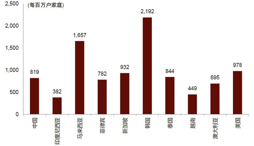 我们认为印尼消费者家居用品支出比例之所以较低,主要是由于:(1)家庭收入相对较低,多数支出用于生活必需品(例如吃住和水电支出),用于可选产品的支出较少;(2)家居用品专卖店与电子商务渗透率方面的差异导致消费者在购买家居产品时的便利程度不同;(3)生活方式存在差异性,亚洲国家的消费者追求“Do-it-for-me”消费风格,而西方国家消费者更倾向于“Do-it-yourself (DIY)”。