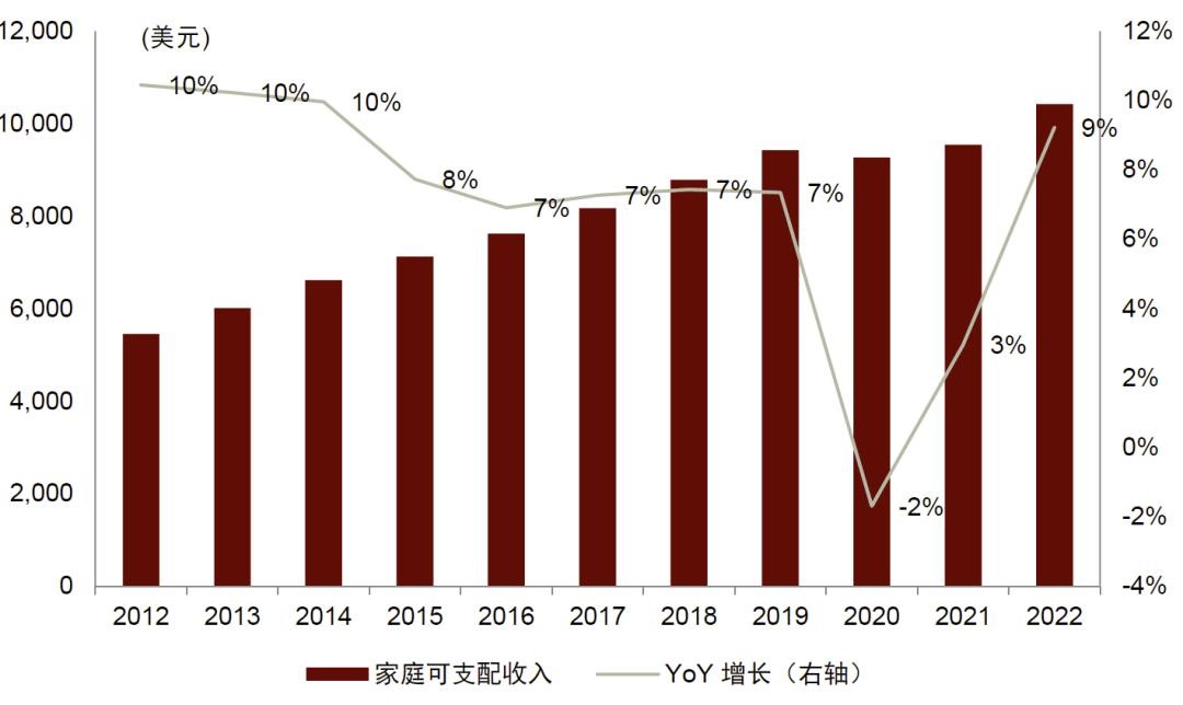 ► 可支配收入在疫情后维持回升趋势,推动消费者转向家居用品连锁店。2022年印尼家庭可支配收入回升并突破10,423美元,在疫情后重拾上升趋势。我们认为收入水平回升或将推动家居产品消费,家居用品店、尤其是连锁店有望从中受益,这一趋势可能导致单体零售店市场份额流失。