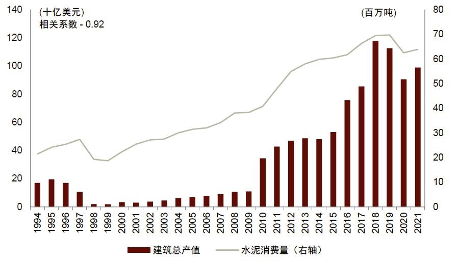图表19: 印尼建筑总产值与水泥消费量同步增长
